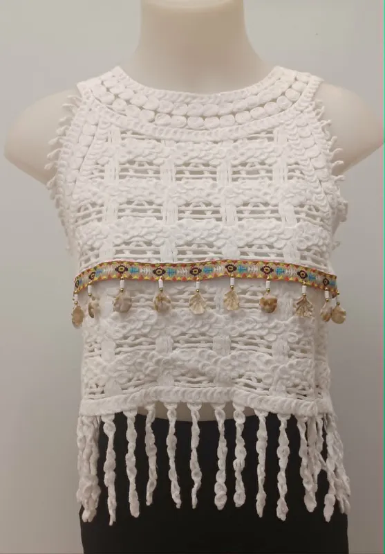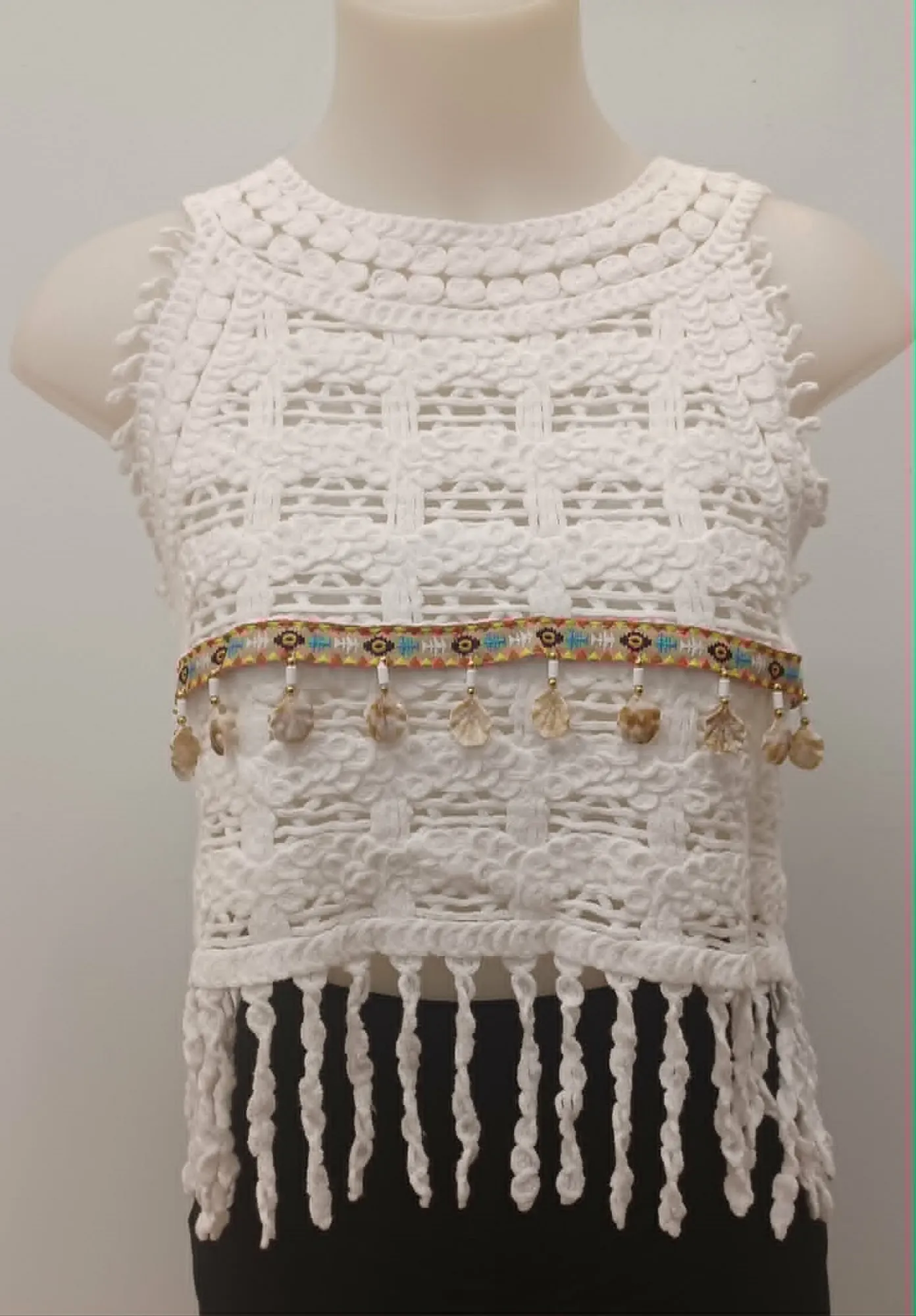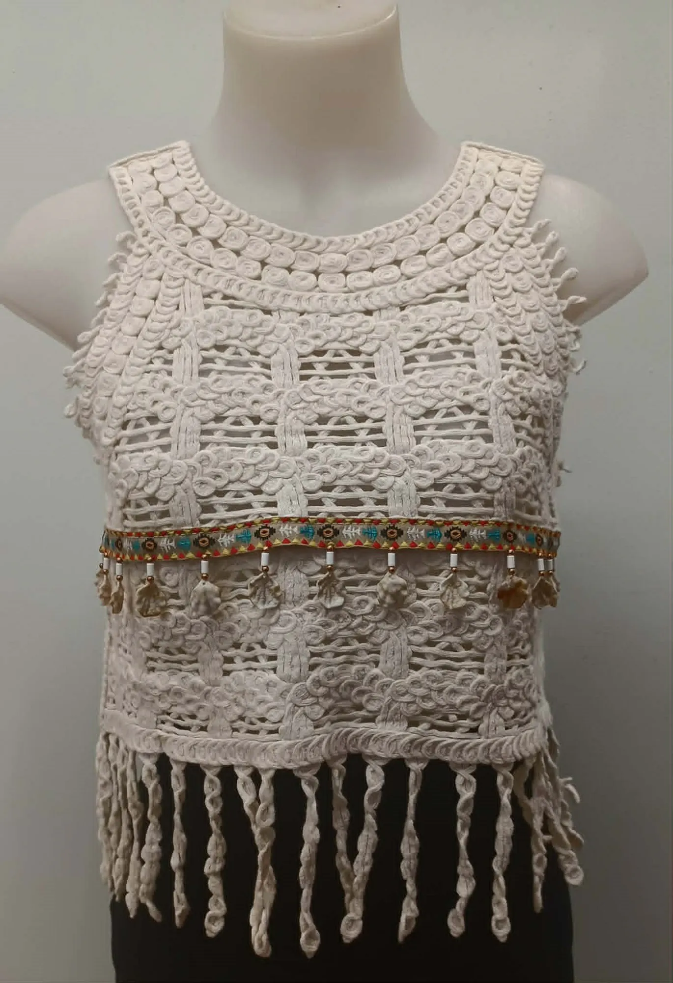 Pretty Crochet Singlet Top with Shells. Up to Size small 12.