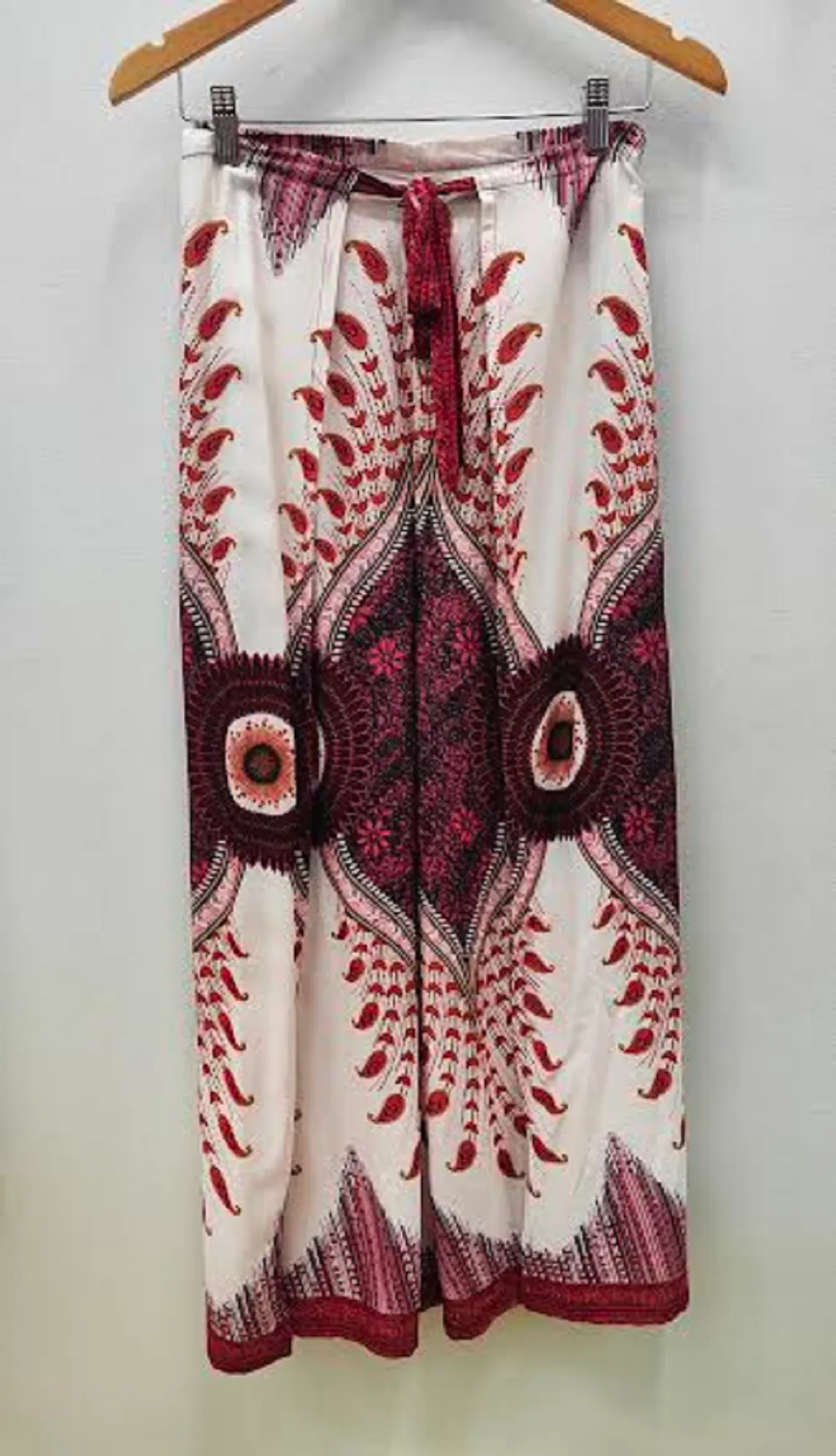 Wide leg Rayon split leg pants, with tie at waist. Elastic back. Sizing up to small 16.