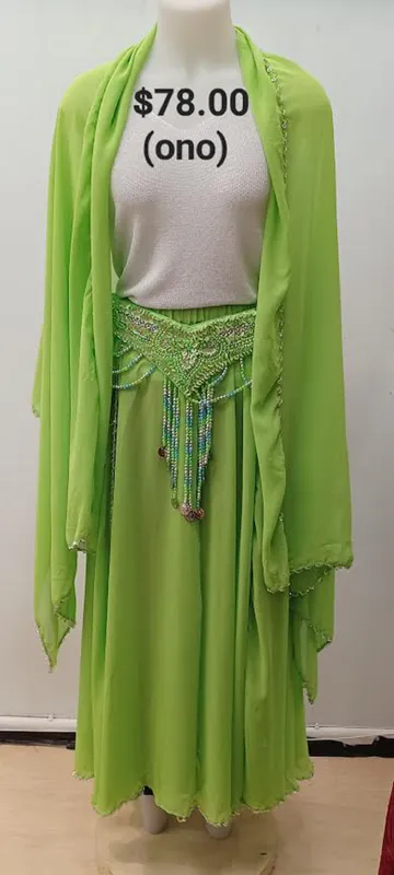 Assortment of pre-loved Bellydance costumes and accessories.