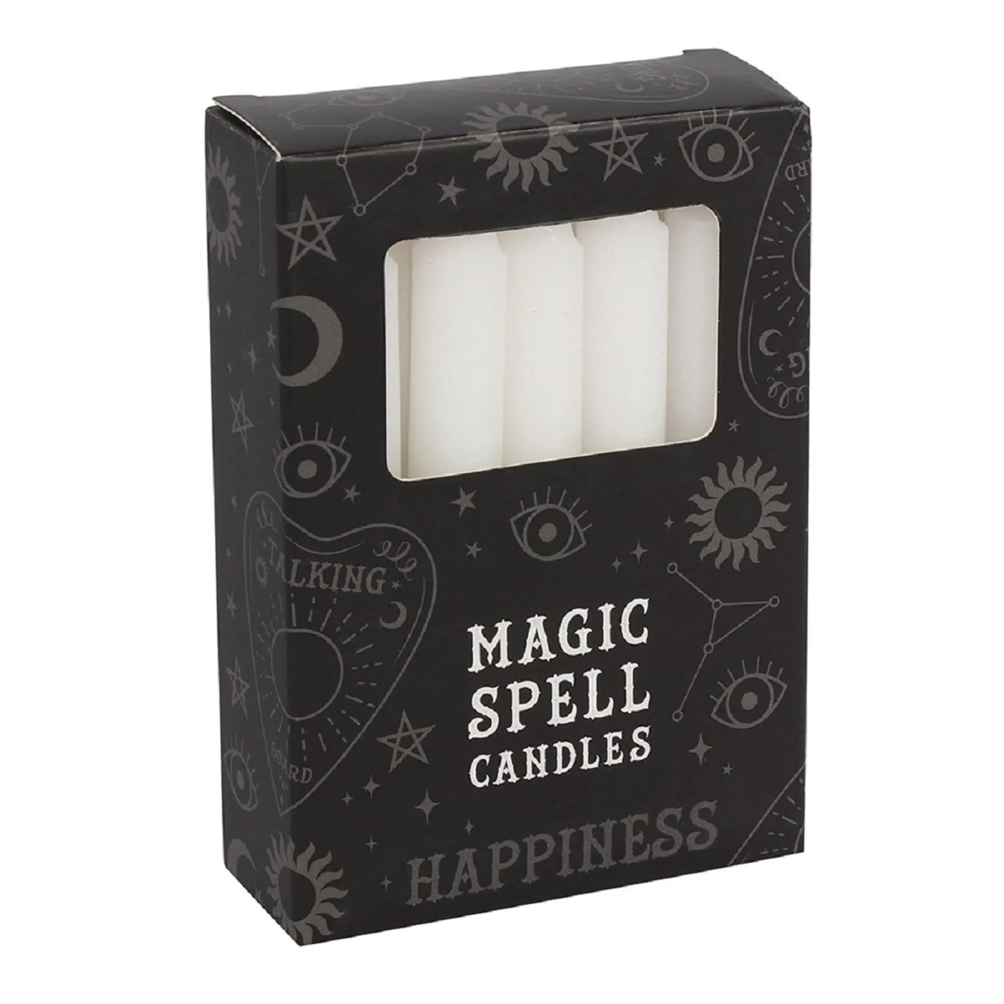 Spell candles for use with rituals to attract happiness, new beginnings and spiritual growth. Candle magic is one of the simplest forms of spell casting in which the caster decides on a goal, visualizes the end result and focuses intent or will to manifest that result. Made from paraffin wax.