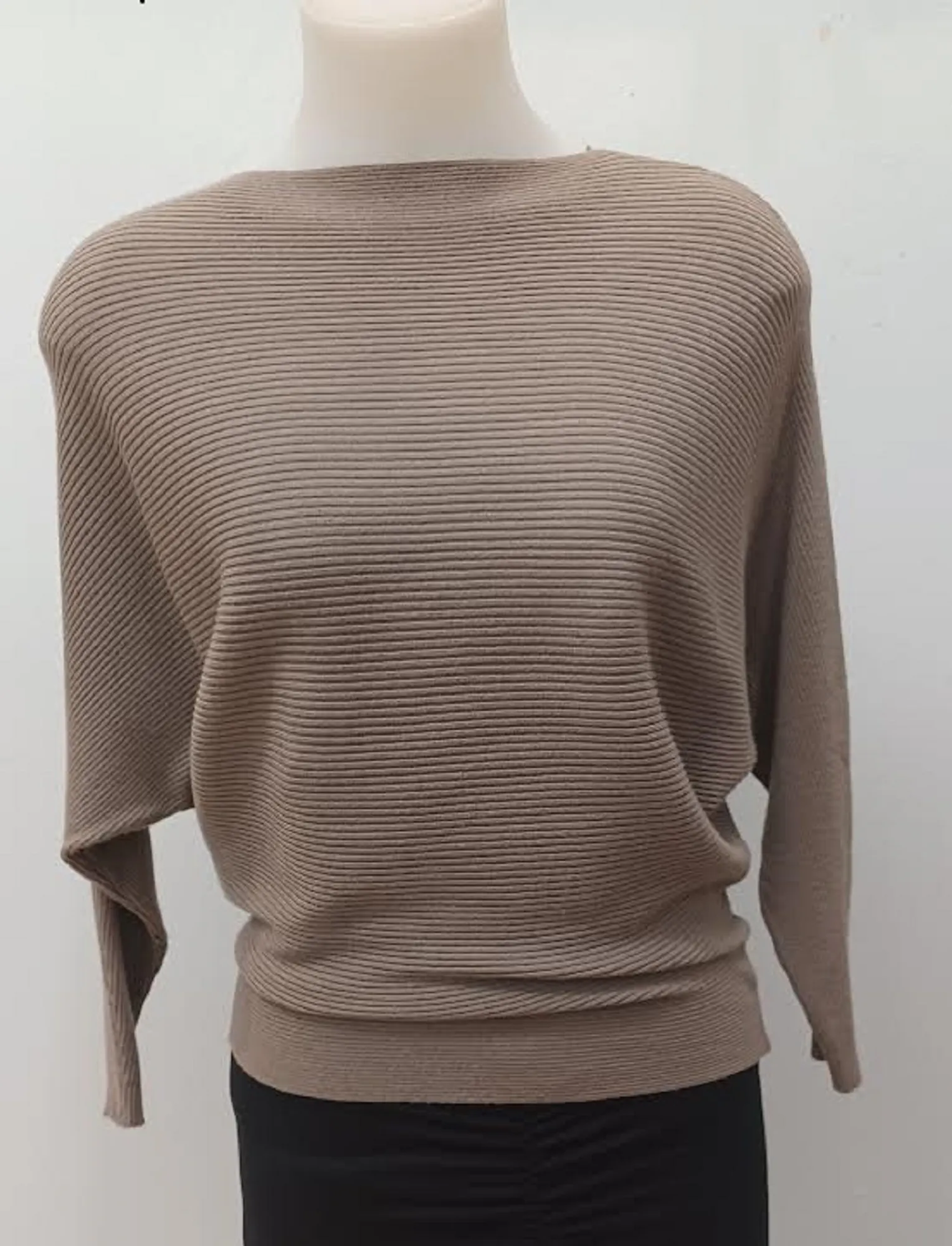 Soft knit high-neck, batwing top. OSFM
