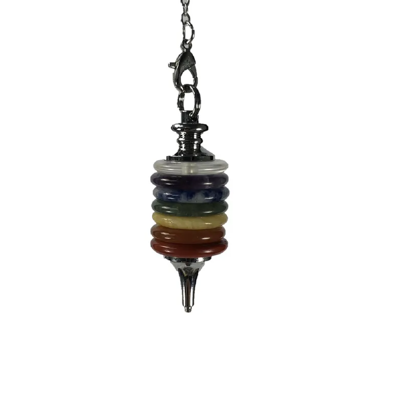 A Chakra Dowsing Pendulum is a spiritual tool, often made with seven crystals for each chakra, used to detect and balance your body's energy centers (chakras) through intuitive movement, revealing blockages or harmony by swinging clockwise (balanced), counter-clockwise (blocked/releasing), or erratically (imbalanced). It works by responding to subtle energy fields, helping practitioners gain insight for meditation, divination, and energy healing.