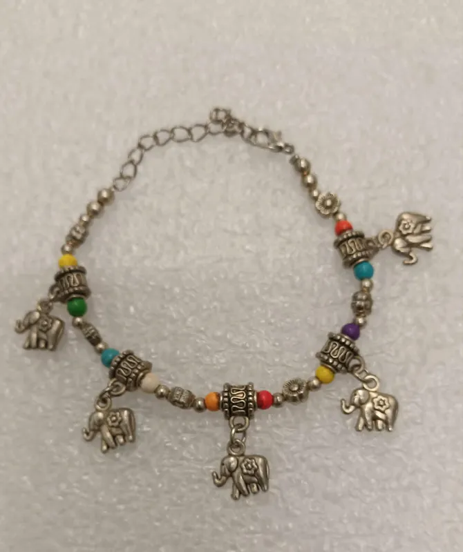 Cute silver/bead Elephant bracelet. Has extra chain.
