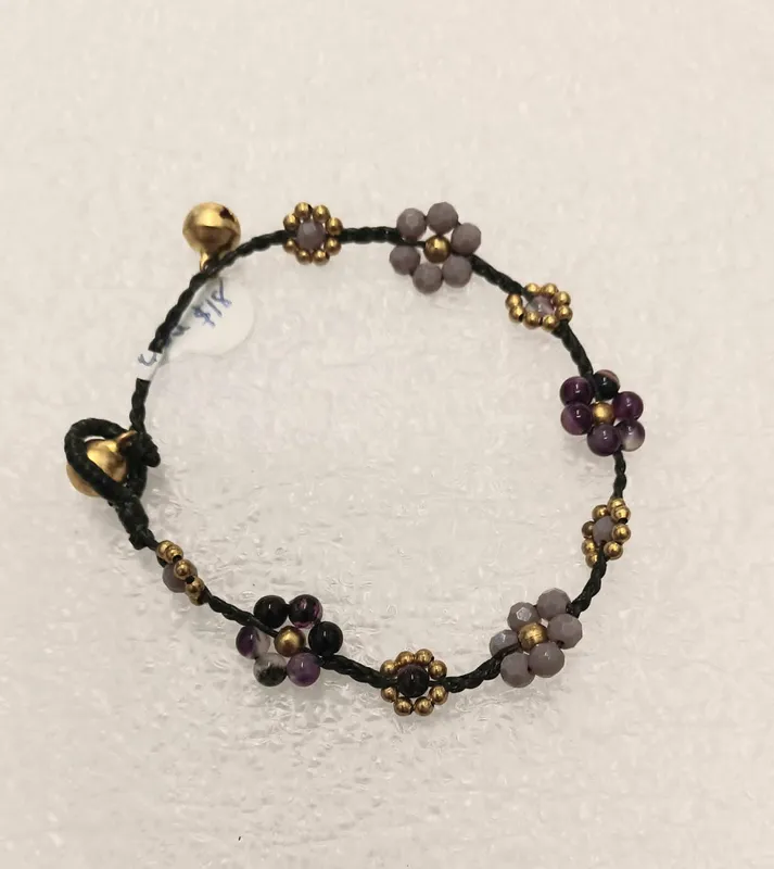 Flower beaded bracelet with gold beads. Size medium.