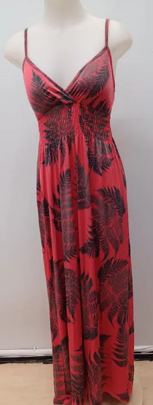 Floor length fern sundress. Soft synthetic material for easy wear and care.