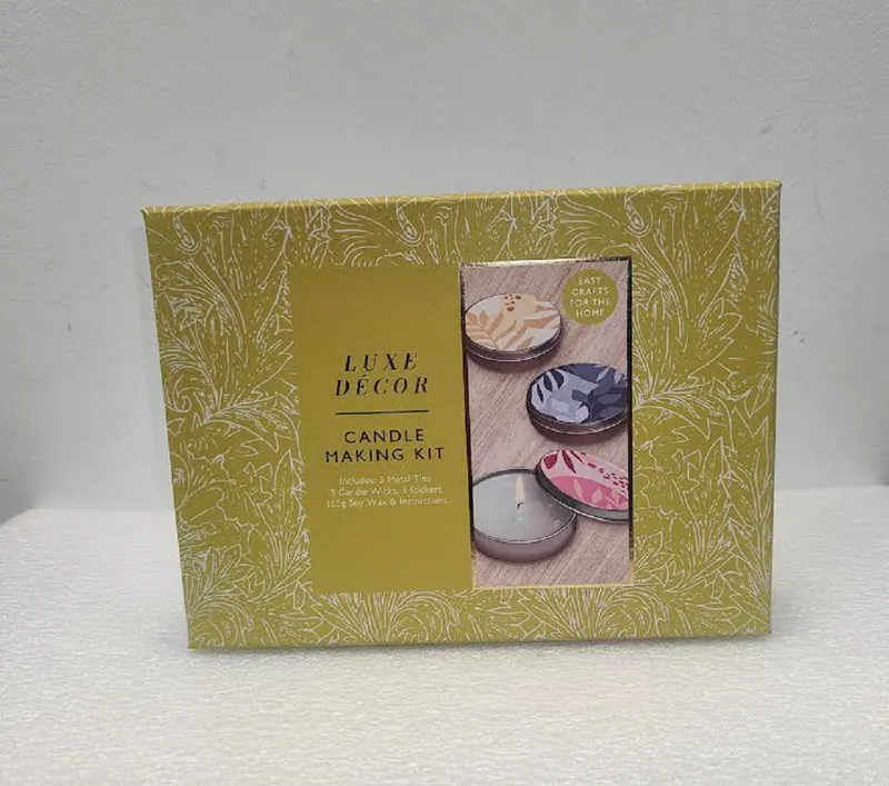 Candle Making kit includes 3 metal tins, 3 candle wicks, 3 stickers, 165g soy wax plus instructions.