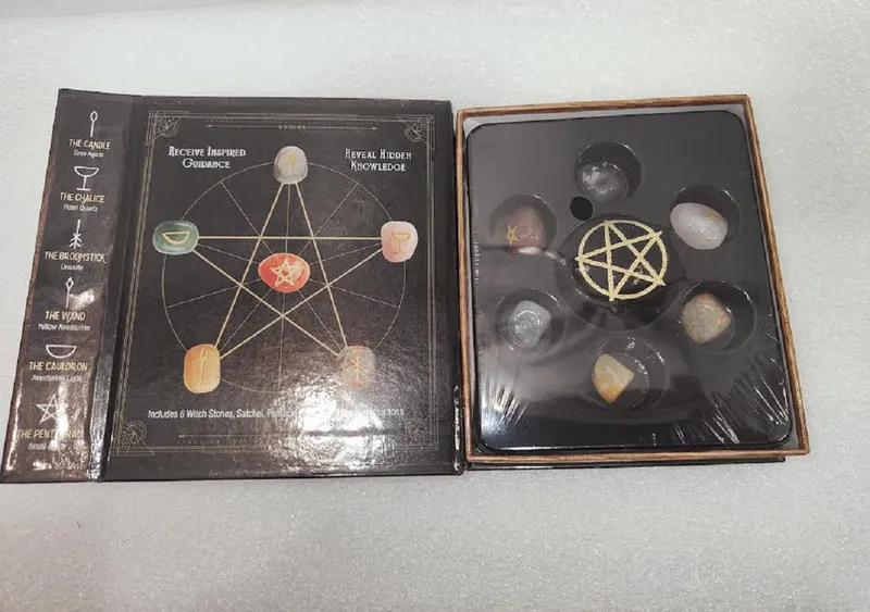Includes 6 different stones, casting chart, pentacle drawstring satchel & instruction sheet