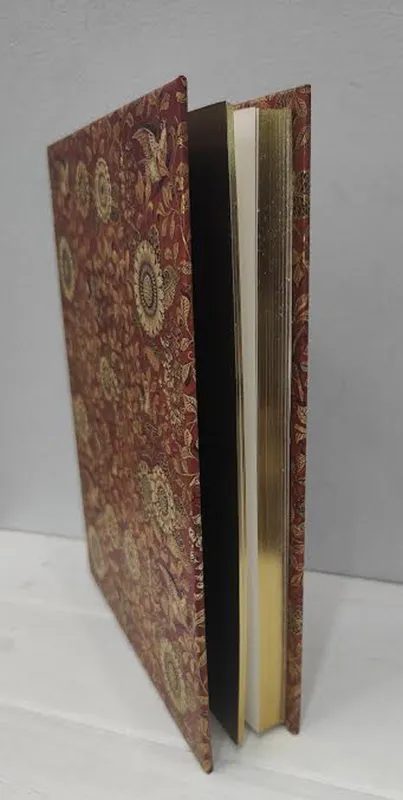 This beautiful journal provides 192 lightly lined crisp writing pages. Acid-free archival-quality 120 gsm paper takes pen and pencil beautifully. Gold Ribbon bookmark. Luminous detailing, with iridescent and gold foil highlights and gilded-gold page edging, make this journal shine. Durable hardcover binding. Binding lies flat for ease of use. Journal is a larger size: 18 1/2 cms wide x 23 cms high.