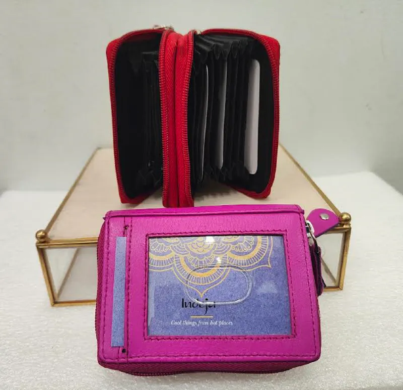 Looking for the ultimate wallet to hold everything while being stylish? Then this is the product. Made from genuine leather, this has two zippered sections. One dedicated to card storage and the other for coins and notes - 9 card slots. Includes clear ID window for drivers license or bus card.